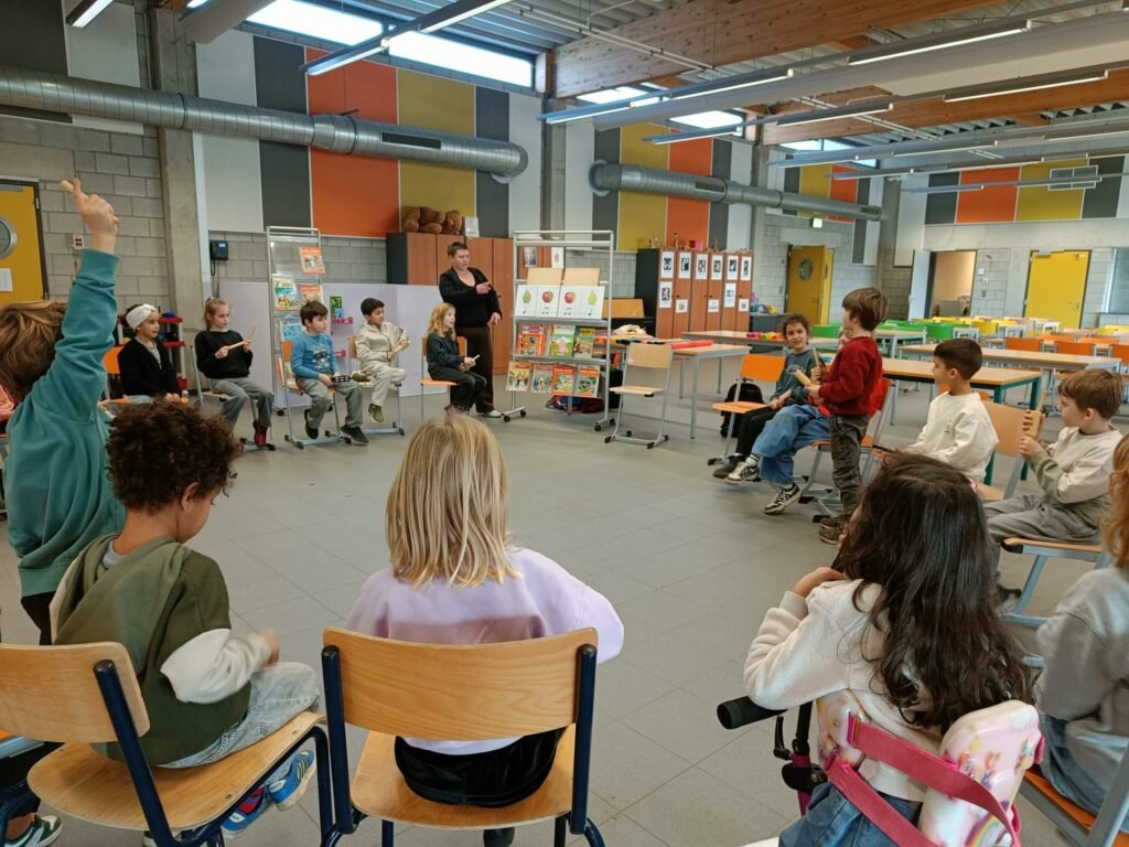 Wat was het leuk in het tweede leerjaar! Tijdens een muzikale workshop mochten de kinderen eerst oefenen met verschillende muziekinstrumenten. Samen klappen, tikken en spelen… zo leerden ze de ritmes stap voor stap kennen.