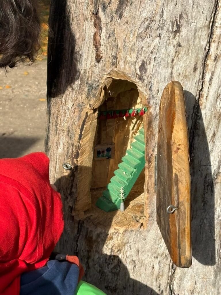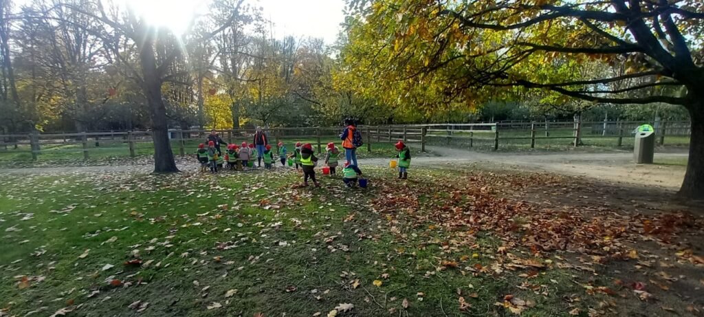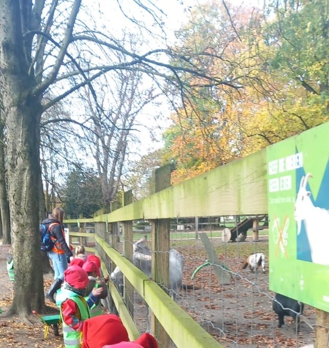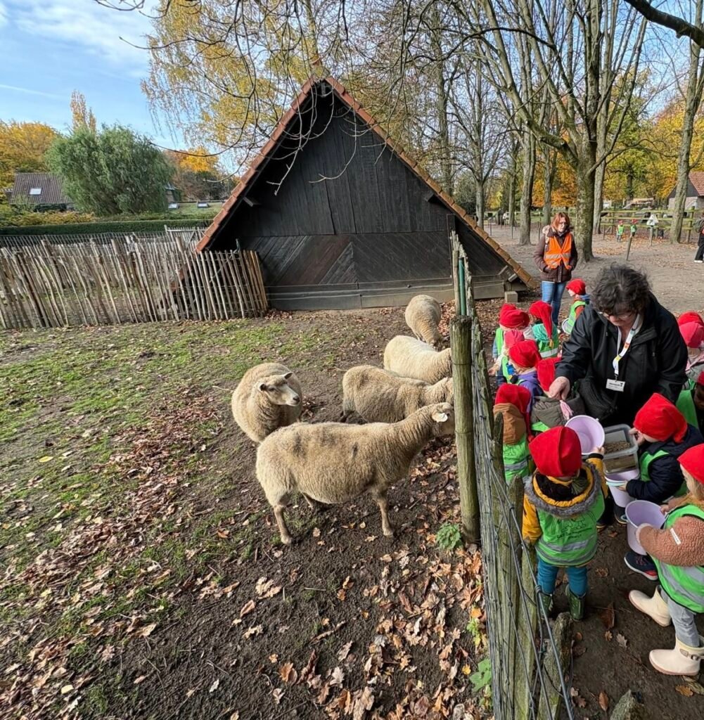 Dinsdag 4 november 2025 was niet zomaar een gewone dag. Toen de kleuters ’s morgens in de klas aankwamen, mochten ze zich meteen klaarmaken om met de bus te vertrekken naar het Tivoli park te Mechelen. De kleuters stapte vol spanning de bus op en weg waren we! Bij aankomst in het Tivoli park kregen de kleuters een emmertje, een kruiwagen en een rode pinnemuts. Bij het opzetten van de pinnemuts, gebeurde er iets bijzonders: de kleuters werden kabouters. Echte hulp-kabouters! En hulp-kabouters hebben natuurlijk een belangrijke taak…