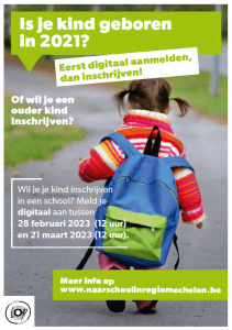 Is je kind geboren in 2021 of wil je een ouder kind inschrijven? Meld je dan digitaal aan tussen 28 februari (12 uur) en 21 maart  2023 (12 uur).