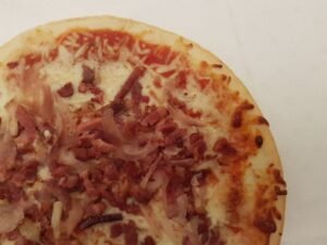 (Ø 29 cm) Tomaten, mozzarella, gegrild spek, rode uien, kruiden.