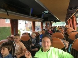 Wat een gezellige drukte op de parking voor de school. Voor de tweede week op rij vertrok een groep Regenbogers op reis. Nu mochten wij, het vijfde leerjaar, naar Houthalen. De busreis verliep voorspoedig en al gauw waren we aan onze eerste activiteit: het blotevoetenpad.